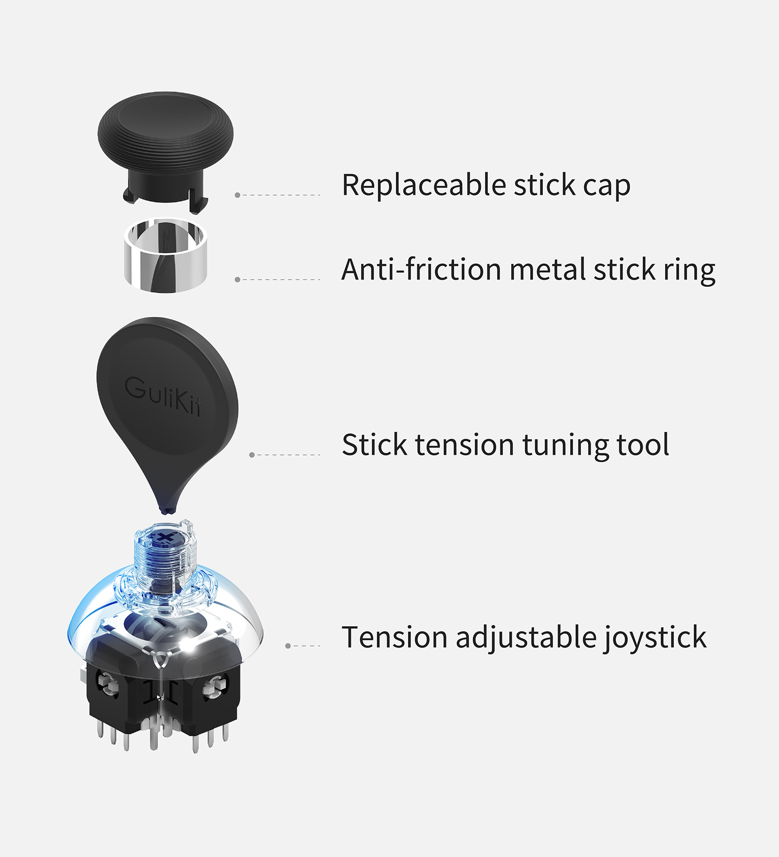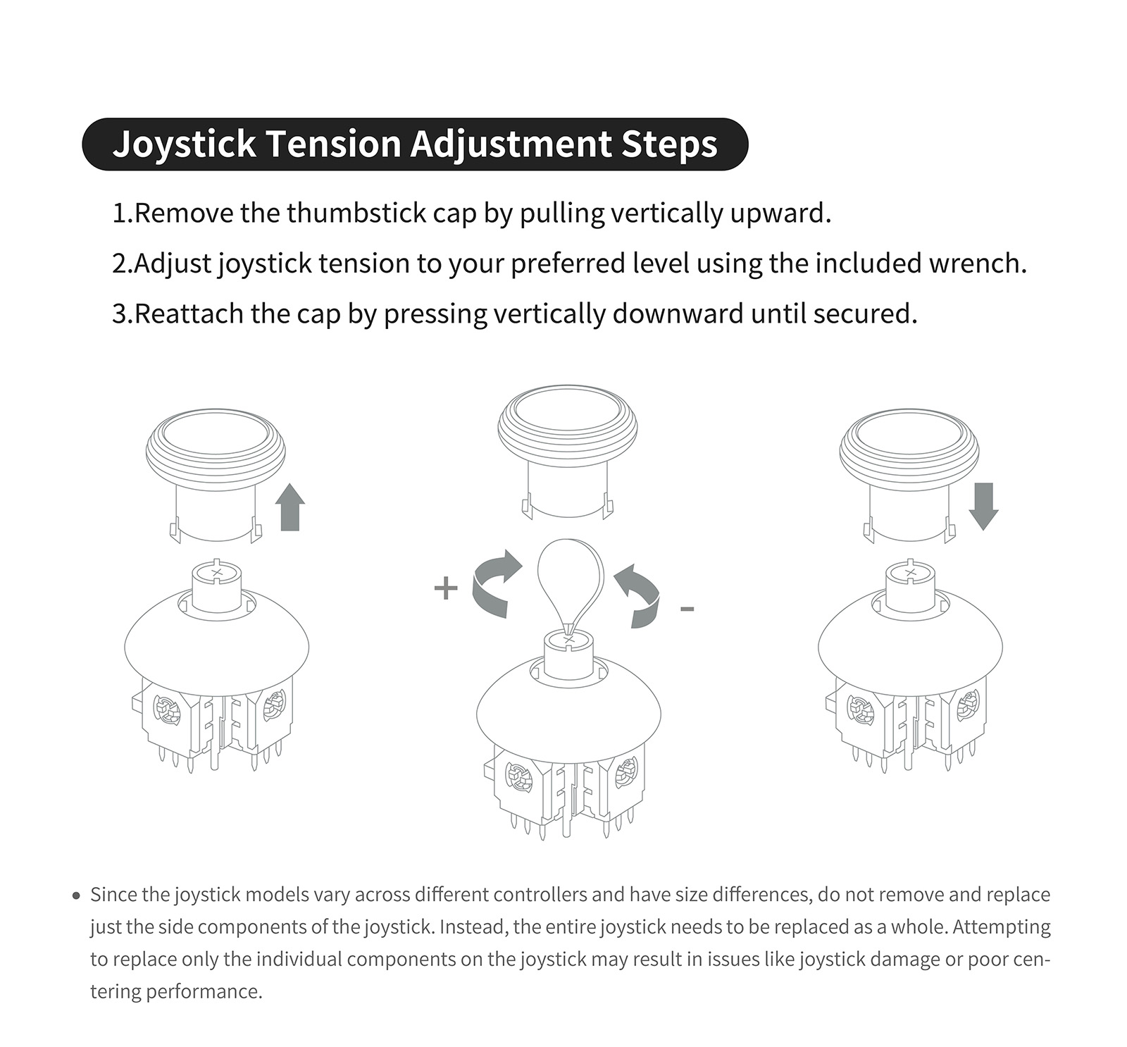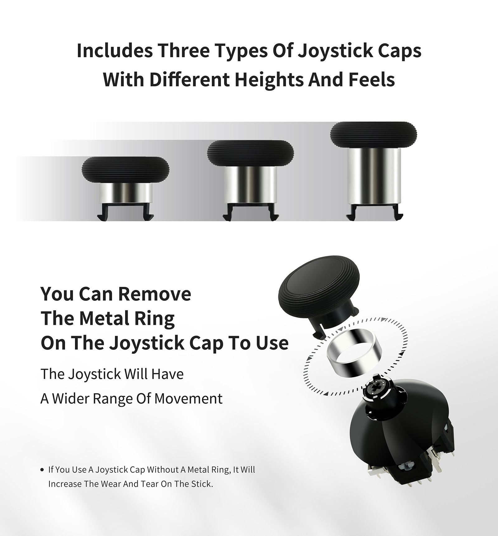 ● Includes Three Types of Joystick Caps with Different Heights and Feels.