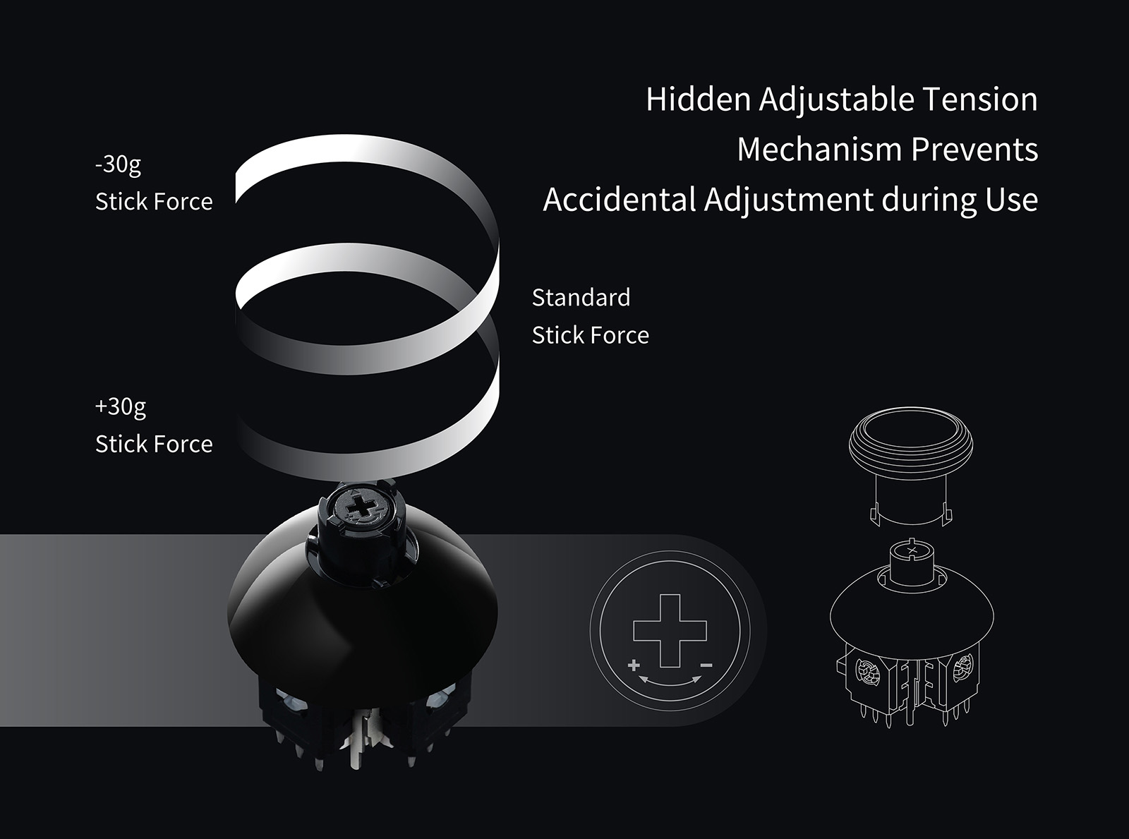 ● 720° Level-less Tension Adjustable to Meet Your Control Force Preference.