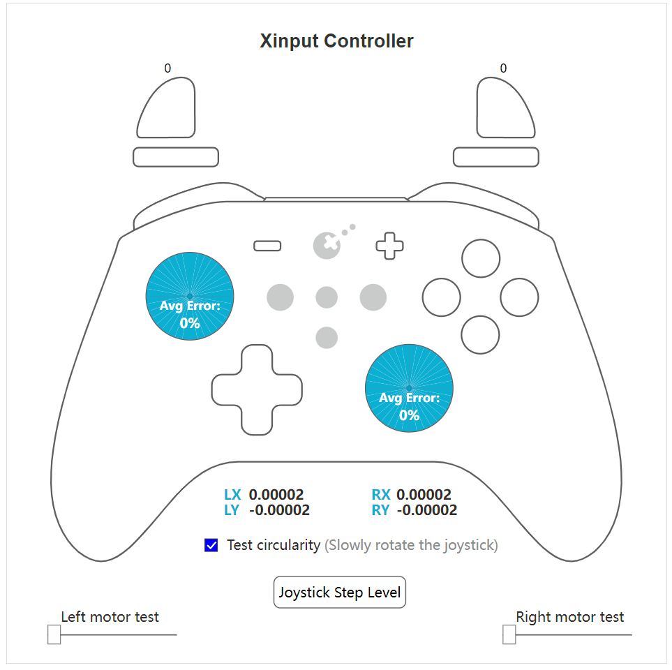 Then fully move the left and right joysticks in complete circles for several times. The controller will vibrate once to indicate that calibration is completed.