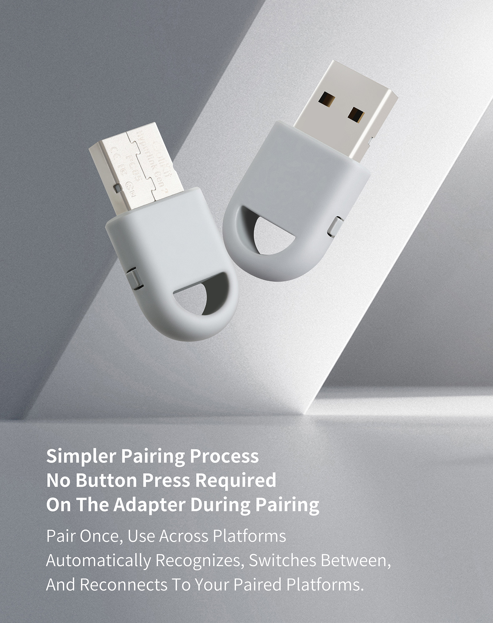 2. Plug the adapter into the USB port, and its indicator will flash rapidly to automatically enter pairing mode. (No button press required)